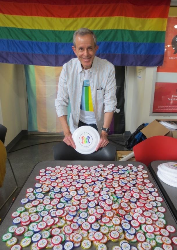 In addition to supporting Pridefest, as well as the Queen College GLASA (Gay, Lesbian and Straight Alliance) club, VMM had a booth at the event. LGBTQ Representation Practice partners Joseph Milizio and Andrew Kimler greeted students and handed out rainbow flag-colored VMM products, including backpacks, frisbees, screen cleaners, chocolates, folders and fliers.