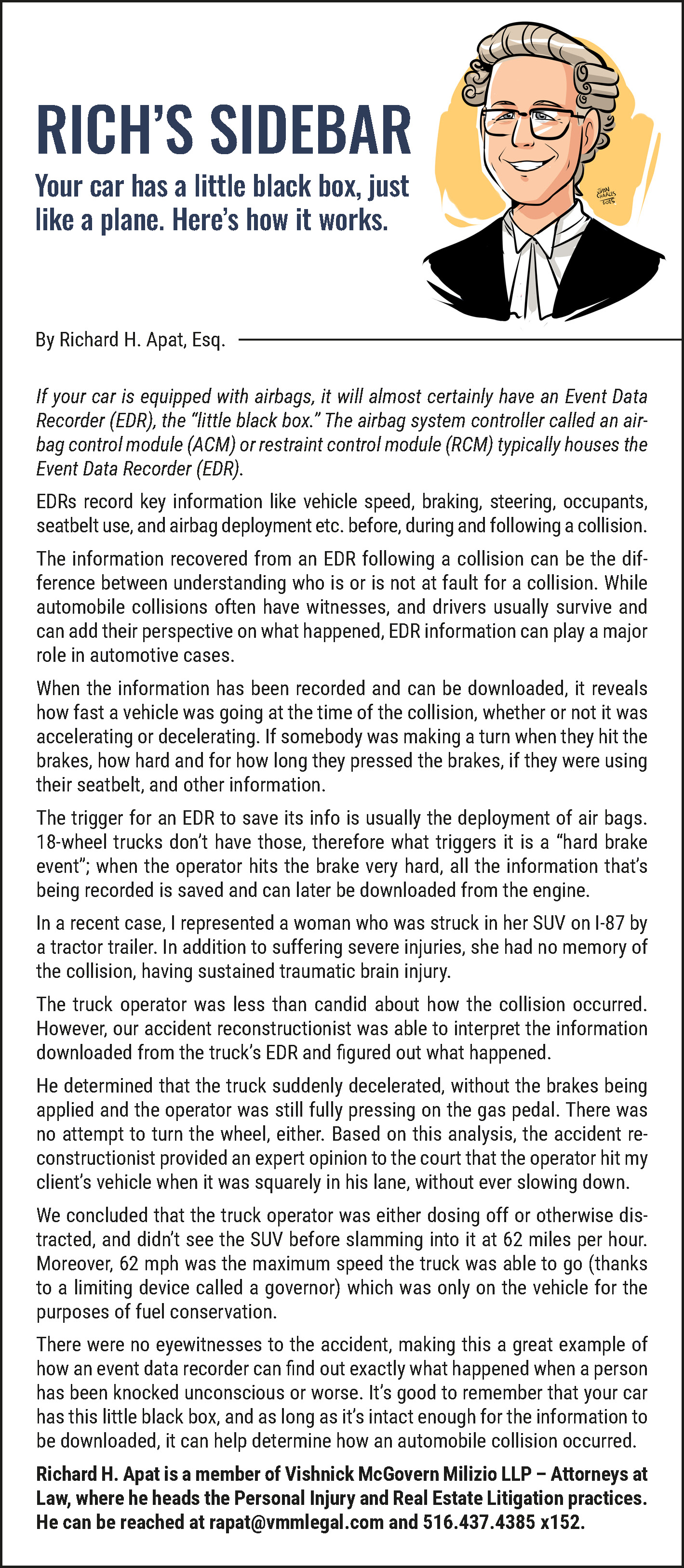 VMM partner Richard Apat, head of the firm’s Personal Injury and Real Estate Litigation practices, heads a monthly column titled "Rich's Sidebar" in Port Washington News.